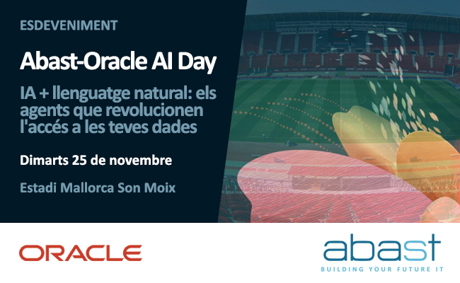 En un entorn empresarial cada cop més competitiu, la capacitat d'innovar i optimitzar processos és clau per a l'èxit. La Intel·ligència Artificial s'ha convertit en el principal motor d'aquesta transformació, i a ABAST volem mostrar-te com pots aprofitar tot el potencial de la mà d'un líder tecnològic com Oracle. Acompanyeu-nos en una jornada on desvetllarem les darreres novetats i veurem, amb exemples pràctics per al sector públic i el d'hospitality, com la IA a Oracle Database està ajudant les empreses a prendre decisions més intel·ligents ia oferir serveis més personalitzats.