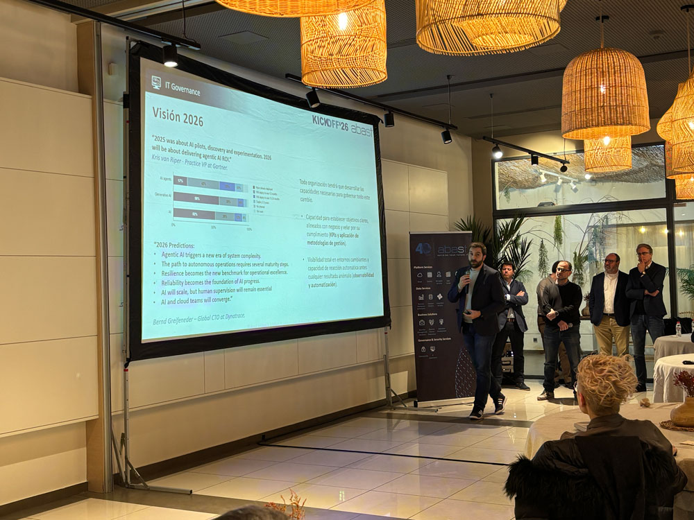 La innovación fue uno de los grandes ejes transversales del Kick Off, con un protagonismo destacado de la inteligencia artificial. A lo largo de la jornada se puso en valor cómo Abast integra la IA no solo en las soluciones que ofrece a sus clientes, sino también en sus propios procesos internos, con el objetivo de mejorar la eficiencia operativa, optimizar la toma de decisiones y potenciar la productividad y la eficiencia laboral de los equipos. Una apuesta clara por una IA práctica, aplicada y orientada a generar impacto real.